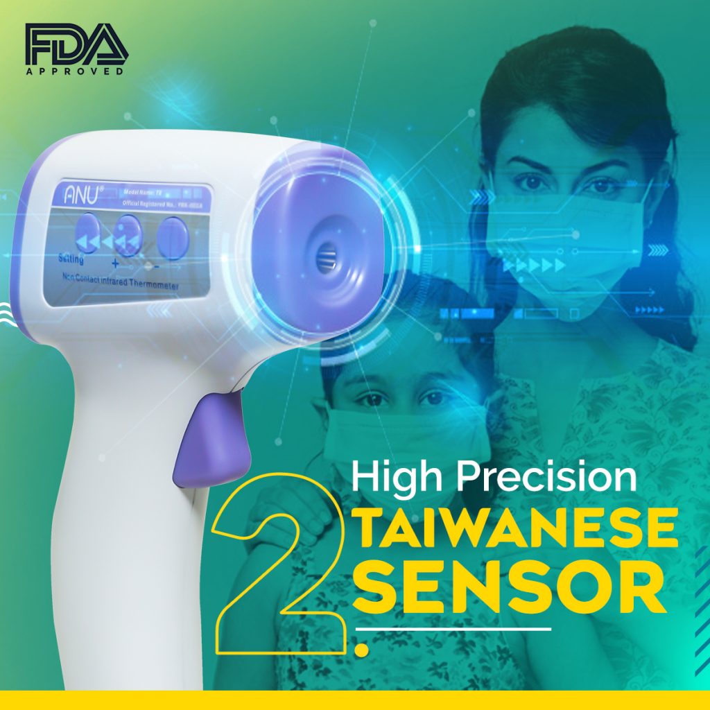 The non contact forehead thermometer is FDA approved. For best results, use it from a distance of 5-7cm from the forehead to measure the body temperature. Backed by advanced technology, it comes with a German lens and Taiwanese sensor to give you a precise reading in a matter of moments. It comes with a large LCD display, colour-coded to give an accurate result. It can be used to measure the temperature of either a person or an object.
